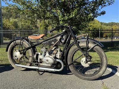 Description: 494cc air-cooled OHV 18hp @ 4,000 rpm 3-peed, shaft drive Approx 1720 units of the R47 left the Munich factory, blending the R37s sporting DNA with everday usability. It was BMW's first true mass-market spots bike, democratizing high-performance riding in an age when motorcycles were as much adventure as necessity This example comes from an amazing collection of pre-war BMWs. This untouched example has retains an original aged patina For more information, contact our sales department at 203-740-1270. |